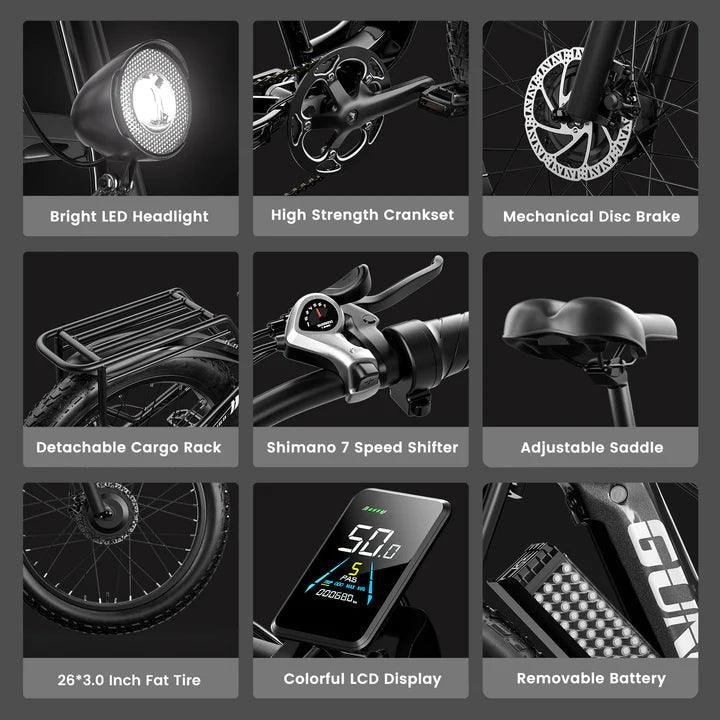 The GUNAI GN68 Electric Bike is the perfect ride for adventurous adults. With a powerful 2000W dual motor and 48V 17.5AH Samsung battery, you can tackle even steep hills with ease. The 26*3.0 fat tires and front and rear shock absorbers provide a comfortable and stable ride, while the IP45 waterproof level ensures durability. Cover long distances with a mileage of 40-50km in pure electric mode and 60-80km with assistance. Suitable for riders 165-195cm tall and can carry a maximum load of 150kg.