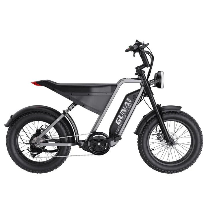 The fat tire mountain ebike is equipped with 20 inch snow tyres. With 90Nm instant torque will provide a thrilling and responsive ride. The GUNAI-Y Moped Electric Bike – full suspension ebike can be ridden on a variety of terrain, from dirt tracks to rocky terrain to steep hills, providing a versatile and adaptable ride. Large bench style seat provides comfort for riders of all size, especially during longer rides.