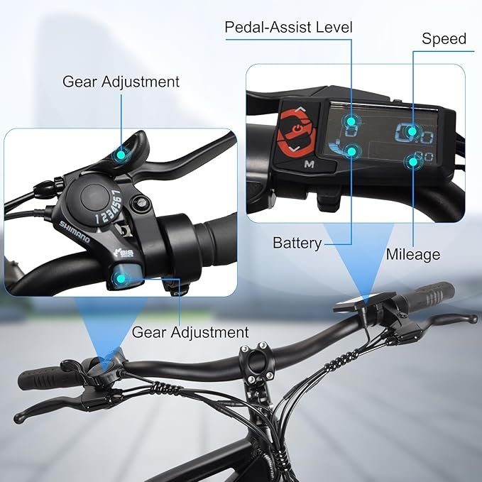 - 【Multi-function LCD Screen】E-bike is equipped with an intelligent LCD screen, which can display information such as riding mileage, gear switching, speed, and fault prompts in real time. The newly upgraded pluggable waterproof cable greatly improves the waterproof performance of the cable.Equipped with bright LED headlights and tail warning light for night riding.