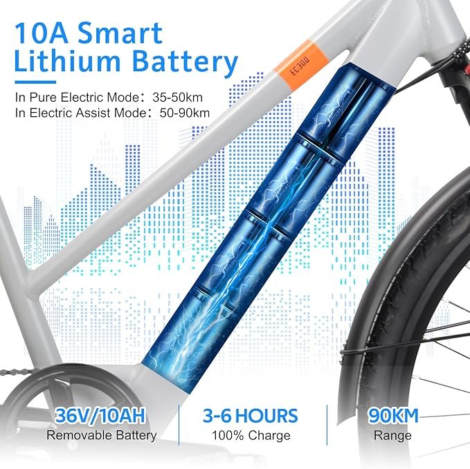 - 【Removable lithium-ion Battery】700C electric bikes equipped with 36V lithium-ion large-capacity battery. Removable battery can be charged at any time.Full charge takes 4-8 hours.BMS protects the battery in all directions and prolongs its service life.3 RIDING MODES: electric bike mode, pedal assist mode and ordinary bike mode.Ranges of 60km to 120km in pedal-assist mode, depending on the assist mode level you choose!